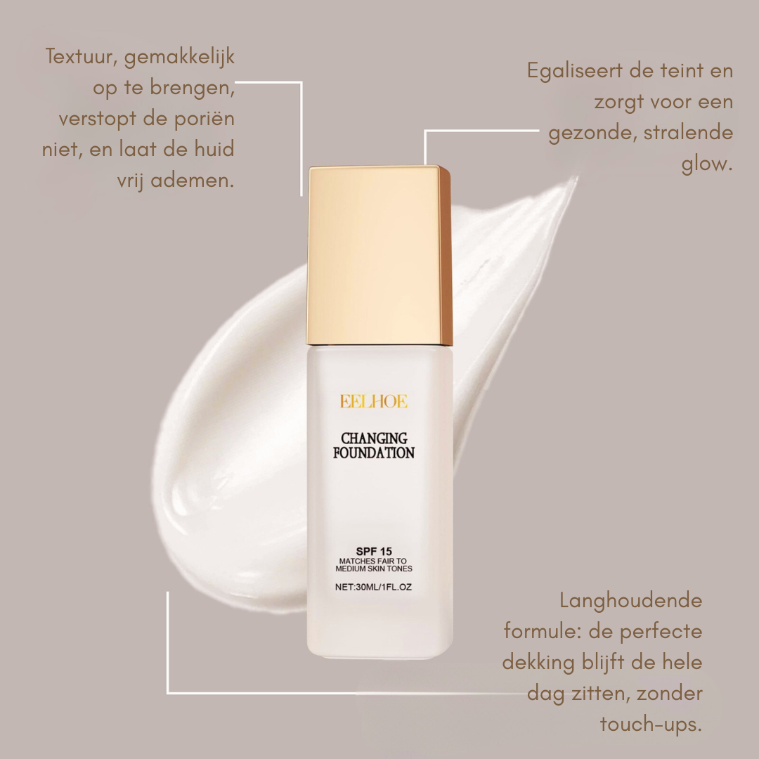 De zoektocht naar de perfecte foundation is voorbij. De Eelhoe Color Changing Foundation is speciaal ontwikkeld voor vrouwen die willen genieten van een egale, frisse en jeugdige teint — zonder zware make-up of zichtbare lijntjes.